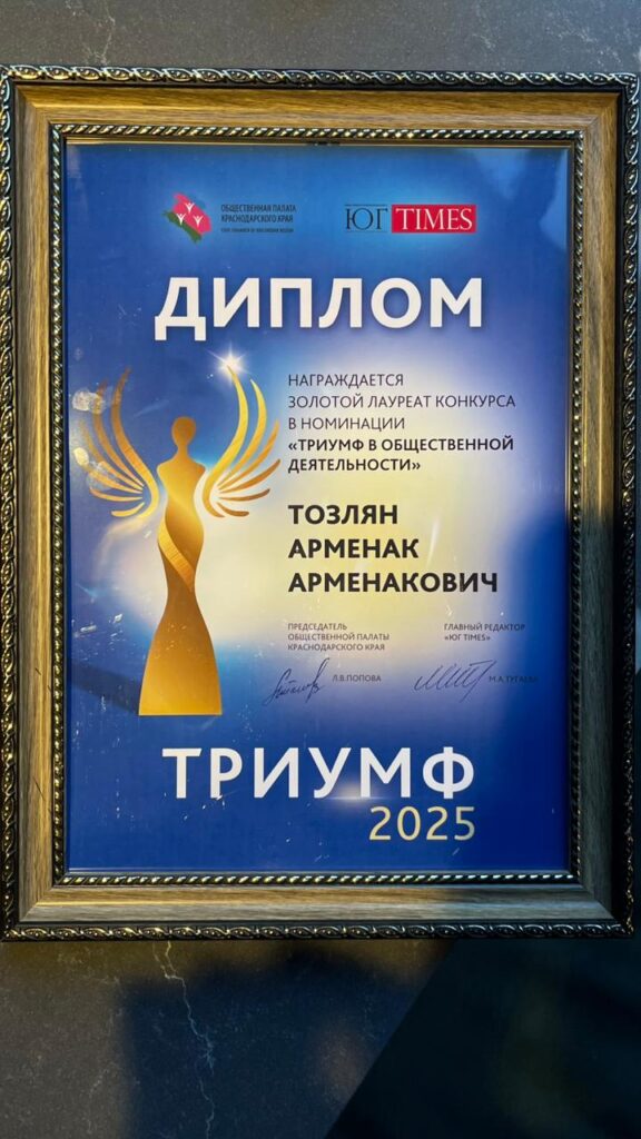 Недавно в Краснодаре завершился краевой социально-ориентированный конкурс «Триумф». В номинации «Общественная деятельность» победителем стал парламентарий от города Сочи Арменак Тозлян.