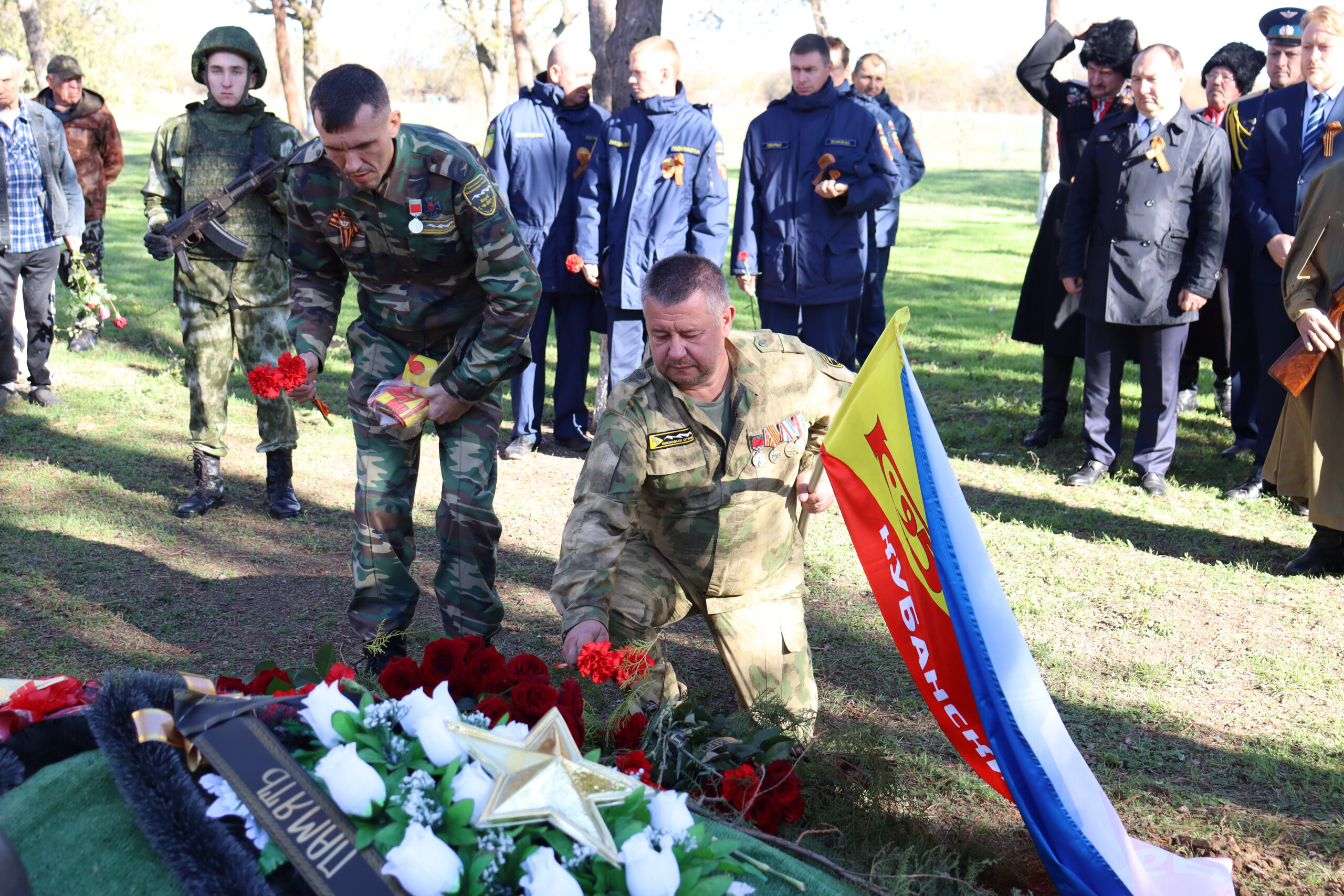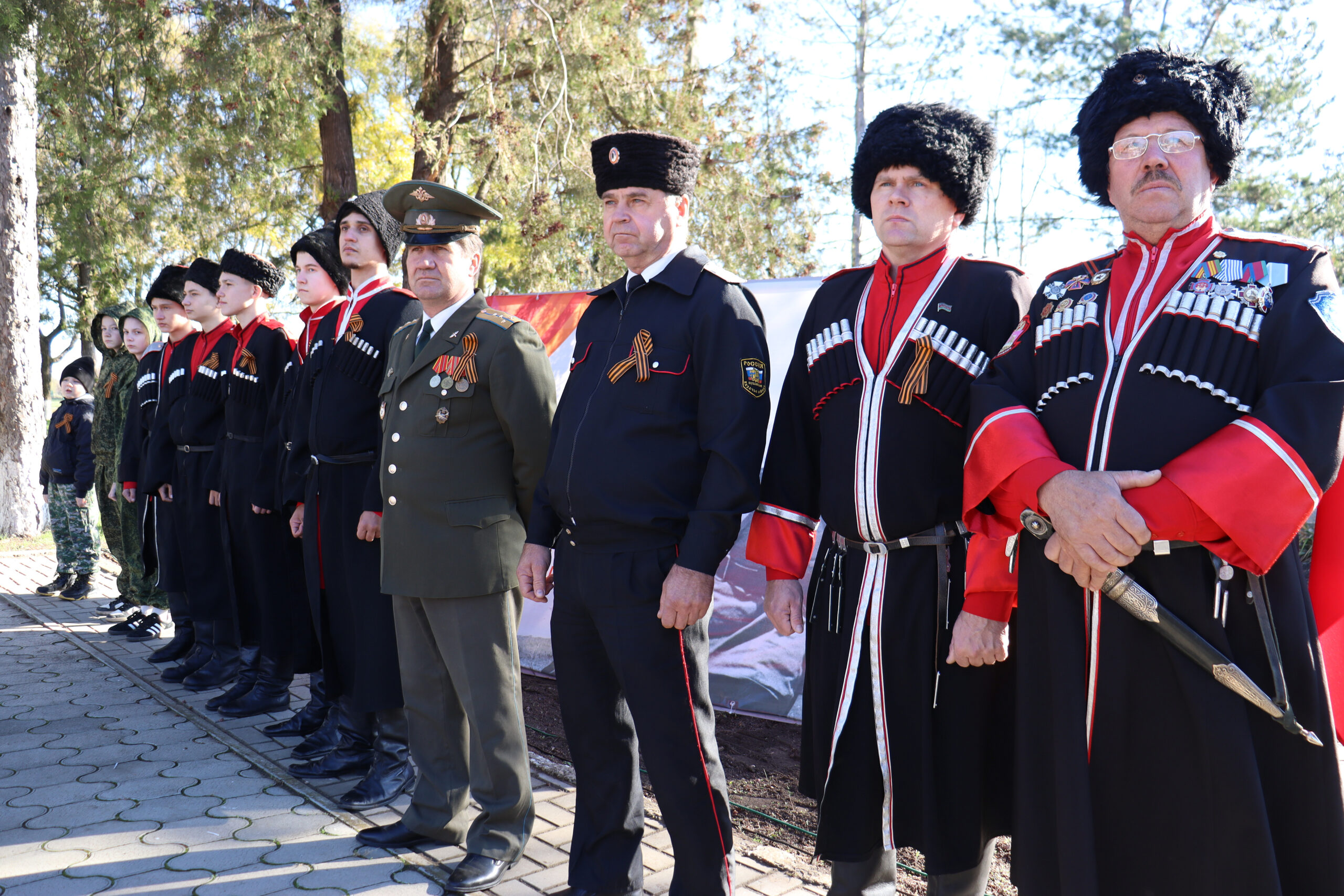 Присутствующие возложили венки и цветы к захоронению. Память солдат, отдавших свои жизни на кубанской земле, почтили минутой молчания.