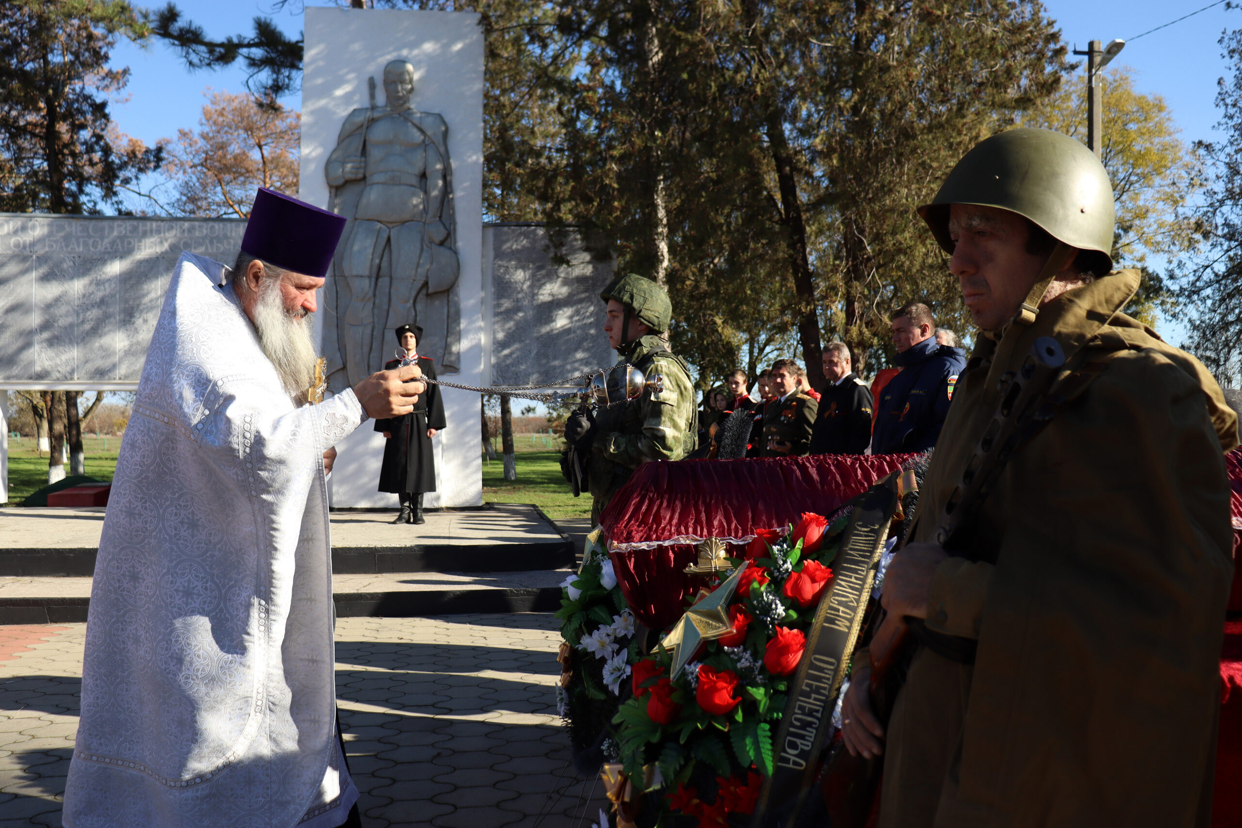 В Кущевском районе состоялась церемония перезахоронения останков восьми солдат, павших в годы Великой Отечественной войны. Проводить советских воинов в последний путь с воинскими почестями собрались на мемориальном комплексе в станице Шкуринской, посвященном землякам, погибшим в годы ВОВ — сообщает пресс-служба администрации Краснодарского края.