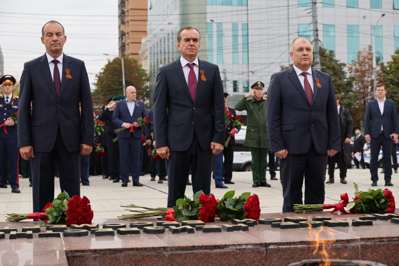 Церемония началась с возложения цветов к Вечному огню, символизирующему вечную память о тех, кто отдал свои жизни за свободу Родины. Губернатор Краснодарского края Вениамин Кондратьев, который также возложил цветы, подчеркнул важность памяти о подвиге наших предков.