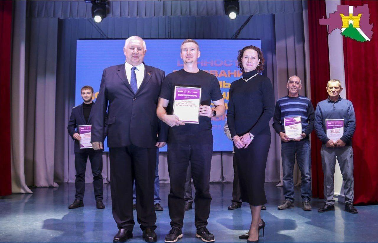 Депутат Законодательного Собрания Краснодарского края Владимир Зюзин совместно с заместителем главы Усть-Лабинского района Татьяной Супруновой и заместителем председателя районного Совета депутатов Борисом Поликиным провели церемонию награждения тех, кто всегда приходит на выручку в тяжёлое время.